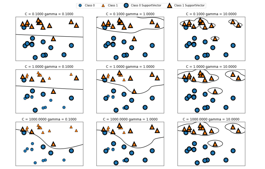 - gamma : 매개변수는 결정 경계의 곡률 조정