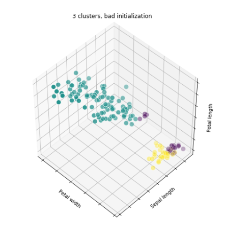 - 랜덤으로 선택된 값들이 한 cluster에 몰린 경우 제대로 클러스터링이 되지 않음