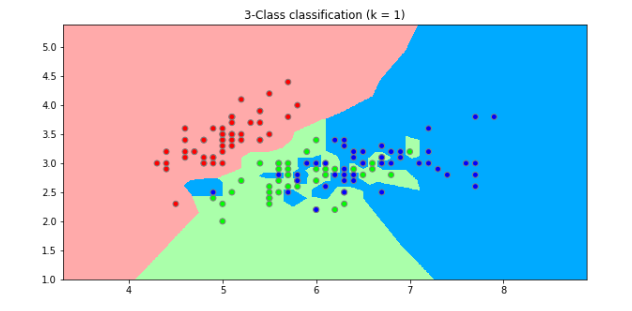 cmap_light = ListedColormap(['#FFAAAA', '#AAFFAA','#00AAFF']) # x & y 좌표계 각 포인트
