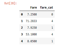 data_df['fare_cat'] = pd.qcut(data_df['Fare'], 5) # 범주화