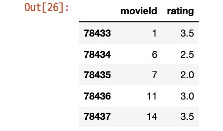 movie_list = list(del_watched_movie(user, i).sort_values(i, ascending=False).title[:5])