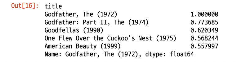 예) 영화 'Godfather, The (1972)'와 유사한 영화 추천