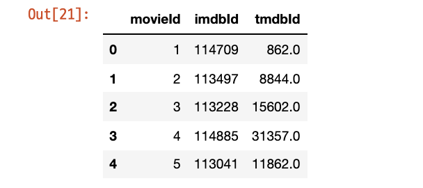 links : metadata와 ratings, moives 사이 id 연결 정보