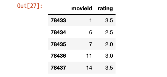 movie_list = list(del_watched_movie(user, i).sort_values(i, ascending=False).title[:5])