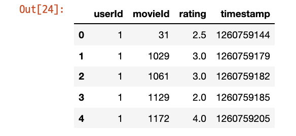 ratings(ratings_small) : 사용자가 영화마다 매긴 별점 정보