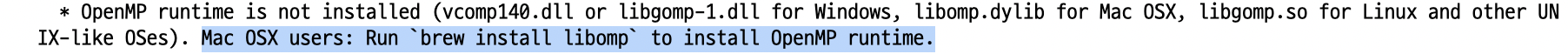 "Mac OSX users: Run `brew install libomp` to install OpenMP runtime."