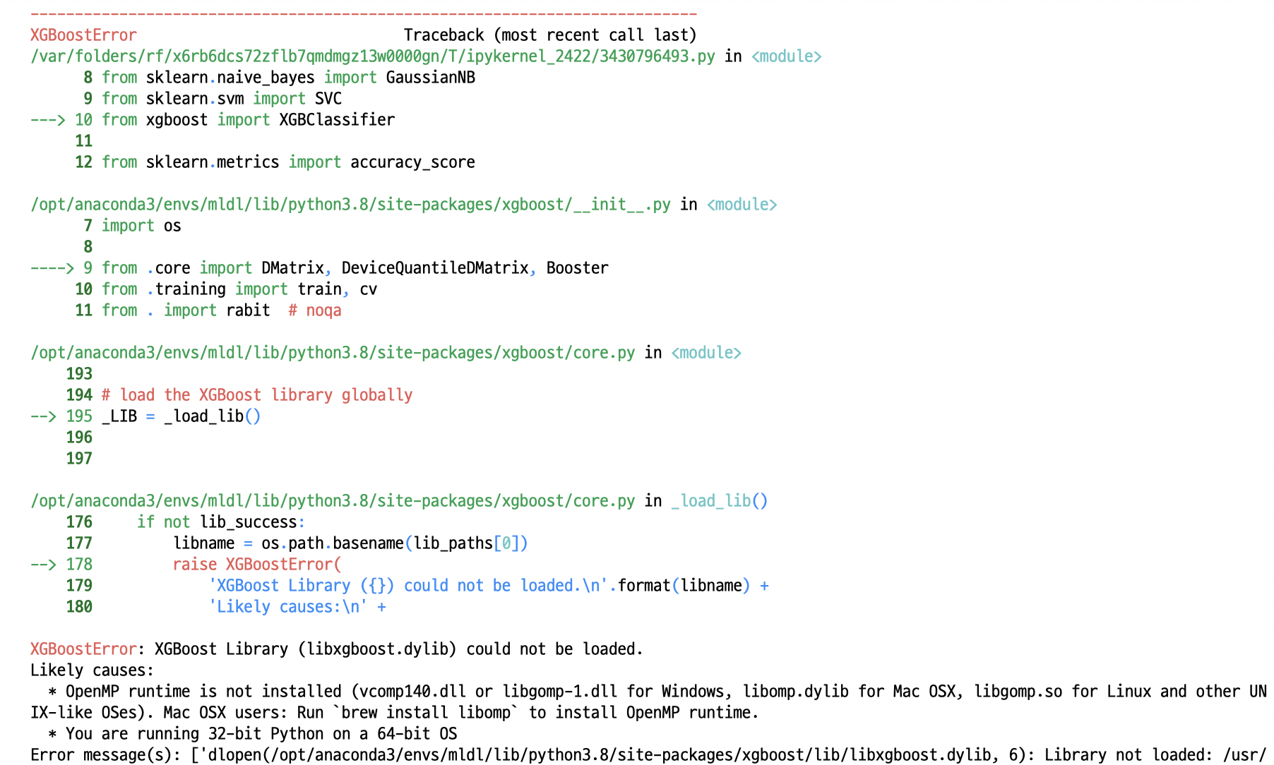 어렵고 험난하게 miniforge와 몇가지 라이브러리를 설치하고 이제 좀 해보려고 하는데 갑자기 import 하다가 나온 에러..