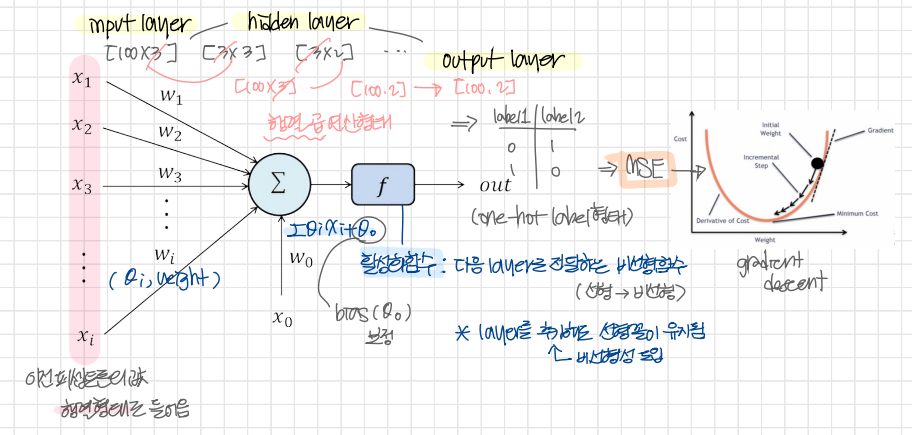 3) 예측값과 결과를 비교하여 계속하여 오차를 줄여나감