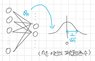 표준편차가 √(2/n) 인 정규분포를 따르도록 가중치 초기화