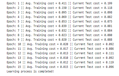 '|| Avg. Training cost = {:.3f}'.format(total_cost / total_batch),