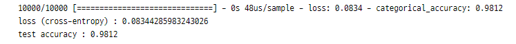 test_data = test_data.reshape(10000, 784).astype('float32') / 255.0 # 0~255 -> 0~1