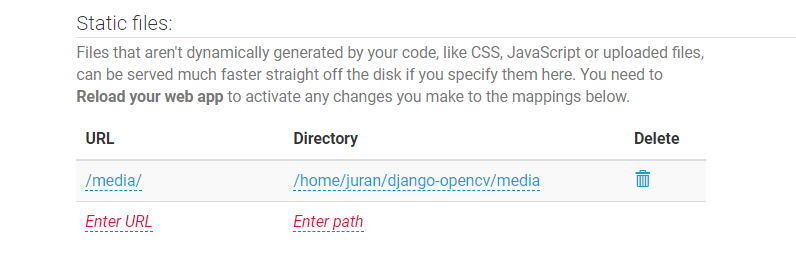 Enter path > /home/{계정명}/django-opencv/media 입력