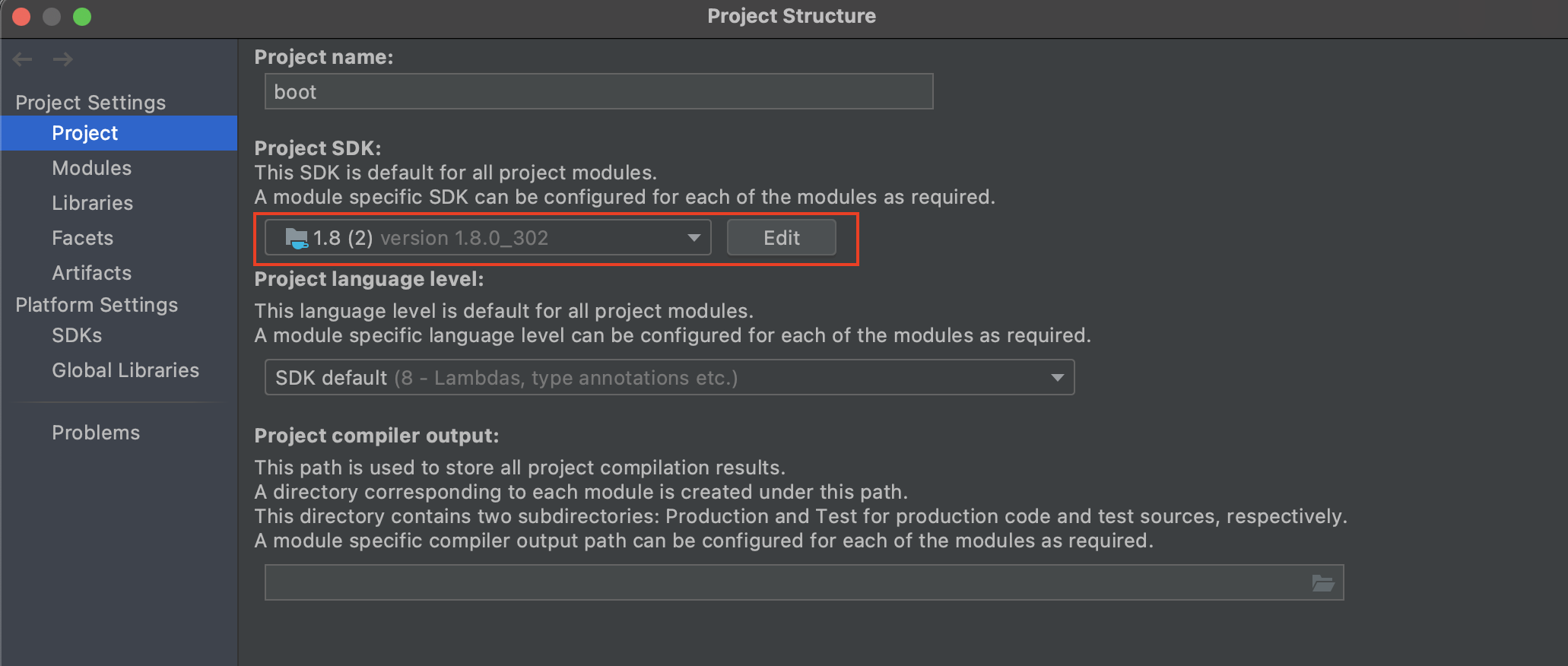 그리고 Project Settings > Project 탭 > Project SDK 에서 sdk 설정을 다시 해줘야한다.
