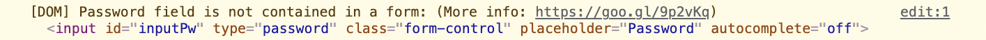 비밀번호 입력을 위해 <input type="password"> 태그를 썼을 때 로그에 남는 경고메시지들 해결하기