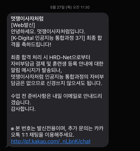 강사님께서 이전까지 모든 수강생들을 모아 인공지능, 취업 자료 공유도 해주시고 서로 의논하는 그런 오픈채팅방에 초대해주셨는데 강사님 증말 열쩡맨이시다.. 자료가 일주일에 적어도 3번씩은 꼬박꼬박 올라오며 질문에 답장도 잘 해주신다.