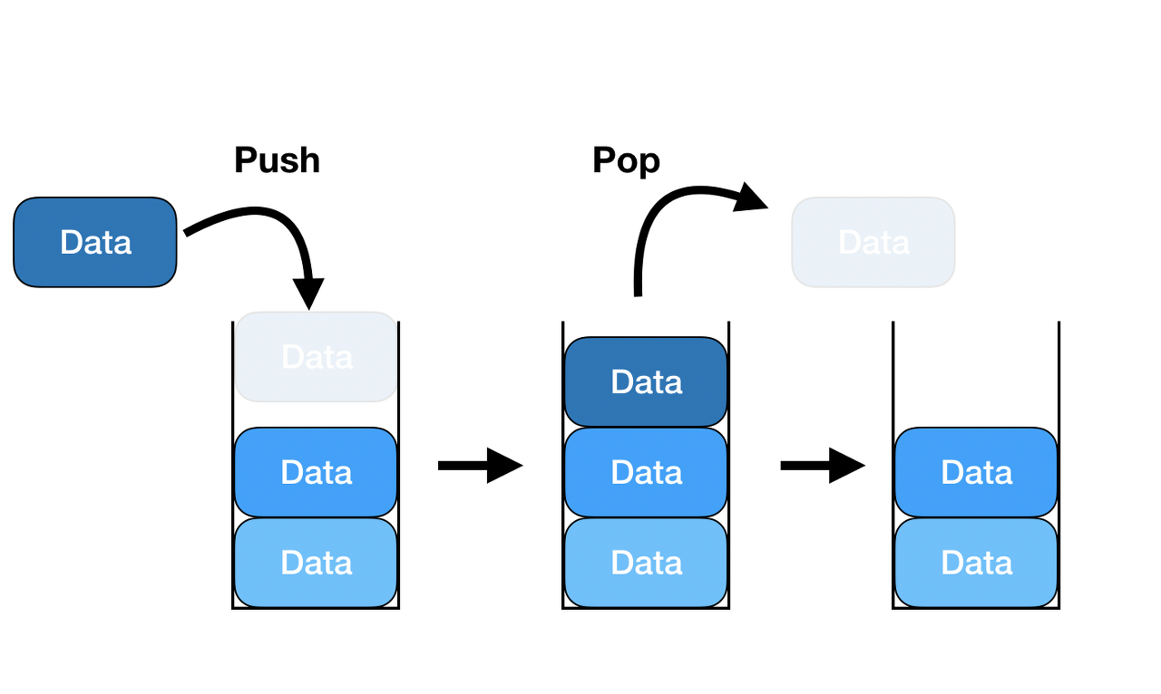 한쪽 방향으로만 삽입(push), 삭제(pop)하며 가장 위의 데이터만 접근 가능