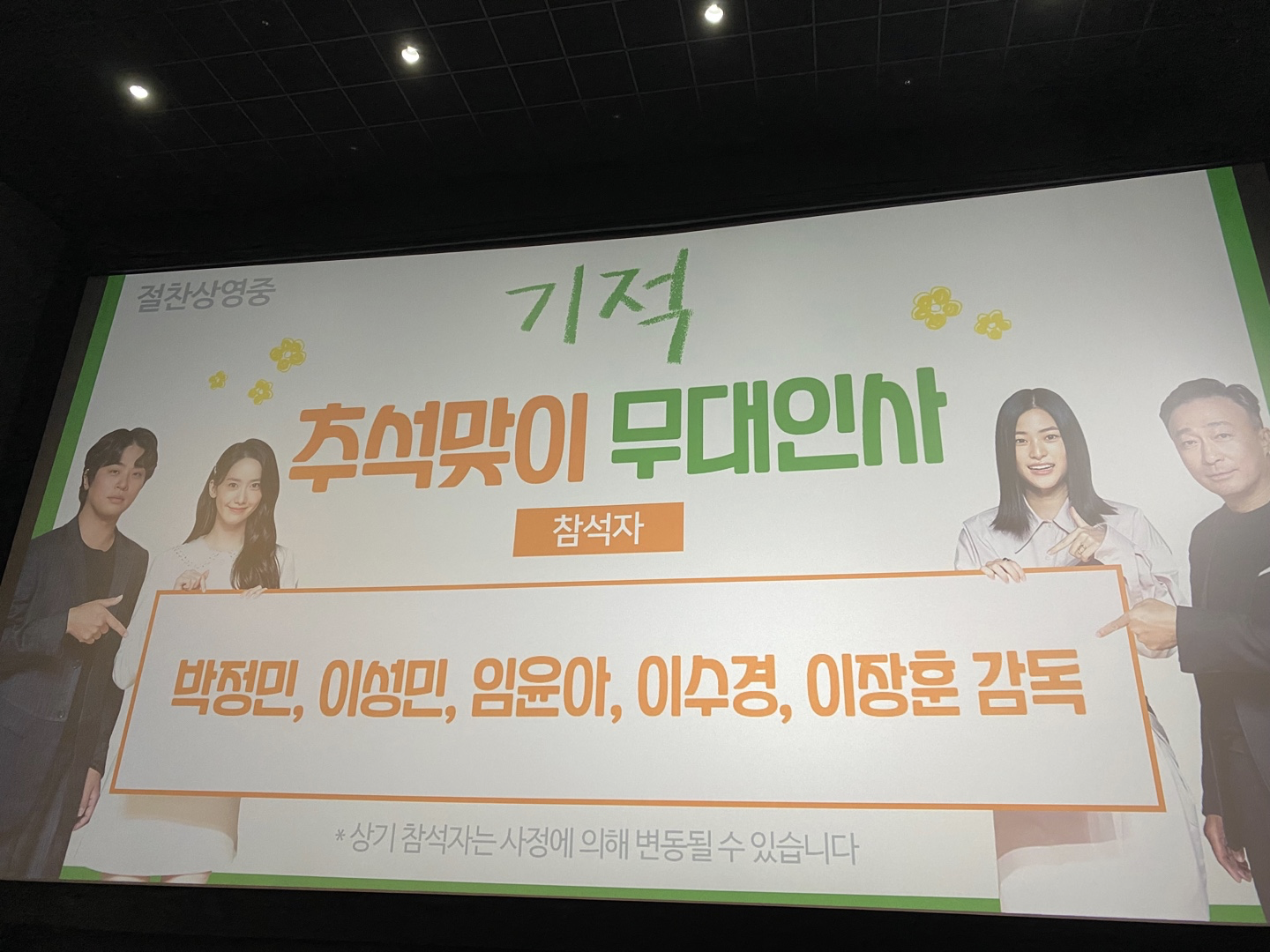 영화 기적 개봉하고 보러가야쥐 했는데 무대인사 자리가 남아서 가게 바로 예매했다