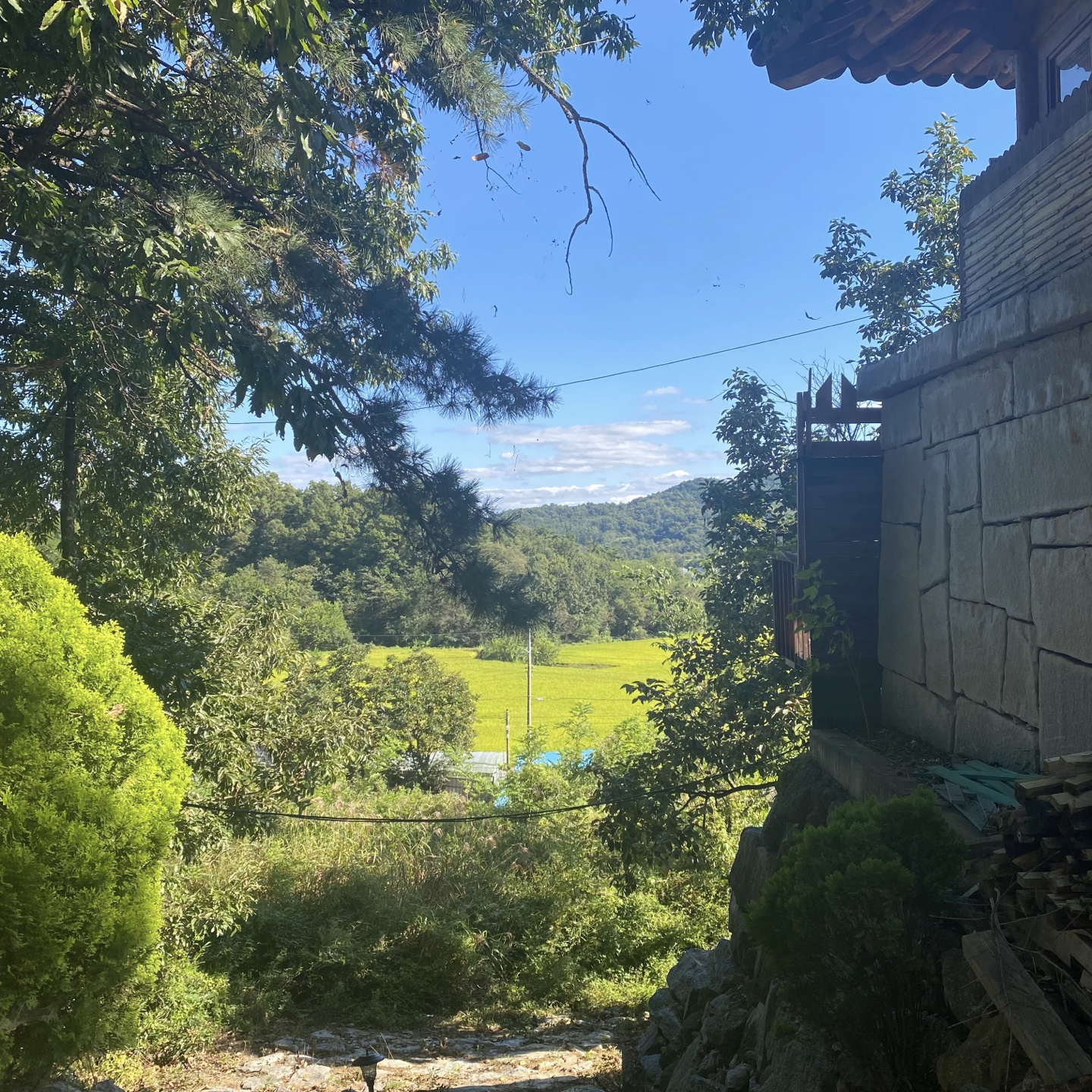 카페도 카페지만 한적한 시골 동네에 있다보니 근처에 높은 건물도 없구 초록초록해서 풍경이 너어어어어어무 이쁘다