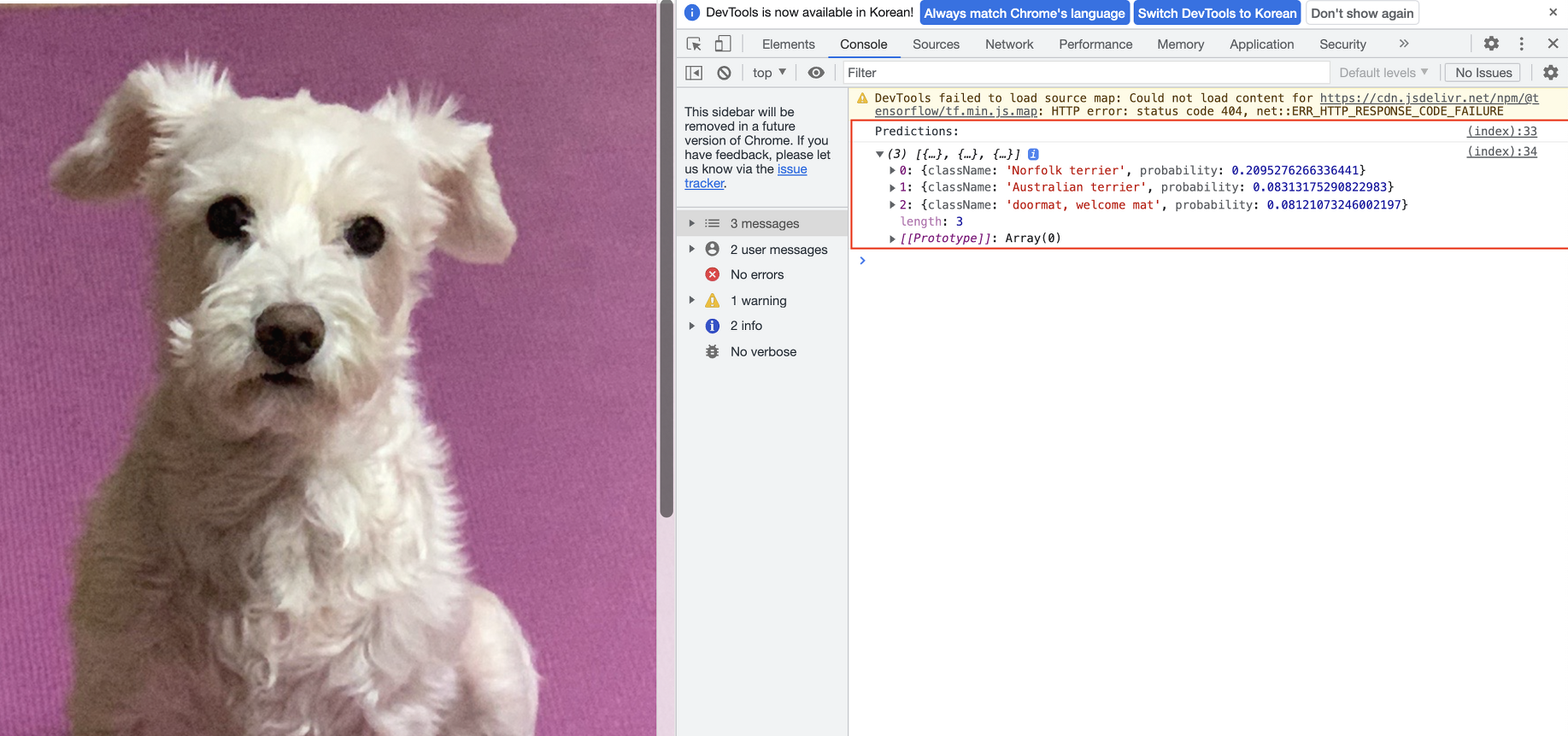 Access to image at 'file:///Users/juran/dev/opentutorials-tfjs/dog.JPG' from origin 'null' has been blocked by CORS policy