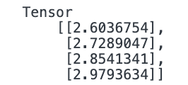 Tensor [[2.6036754], [2.7289047], [2.8541341], [2.9793634]]