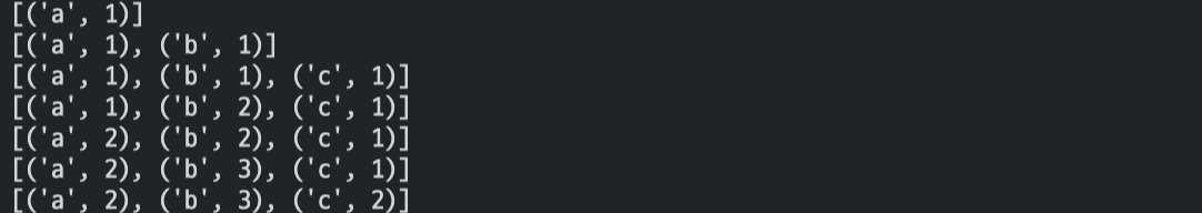 list_ = ['a', 'b', 'c', 'b', 'a', 'b', 'c']