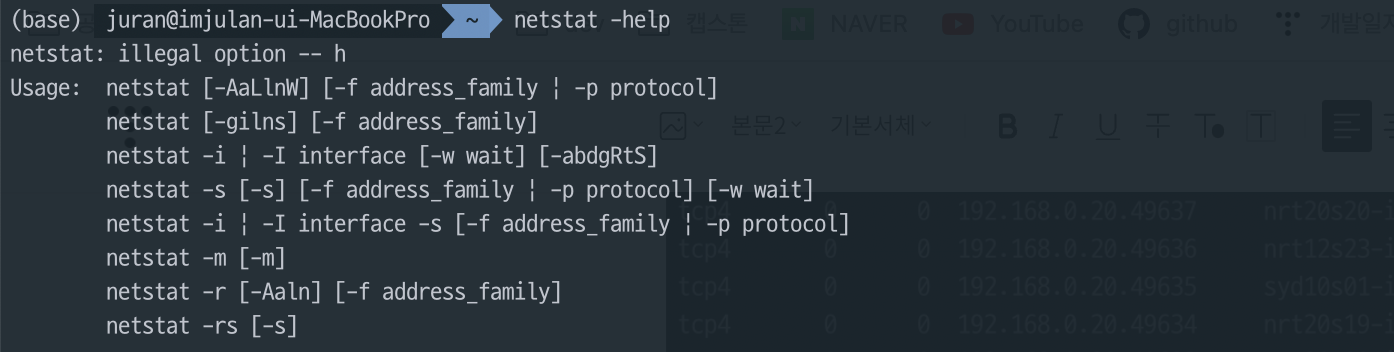netstat전송 제어 프로토콜, 라우팅 테이블, 수많은 네트워크 인터페이스(네트워크 인터페이스 컨트롤러 또는 소프트웨어 정의 네트워크 인터페이스), 네트워크 프로토콜 통계를 위한 네트워크 연결을 보여주는 명령줄 도구