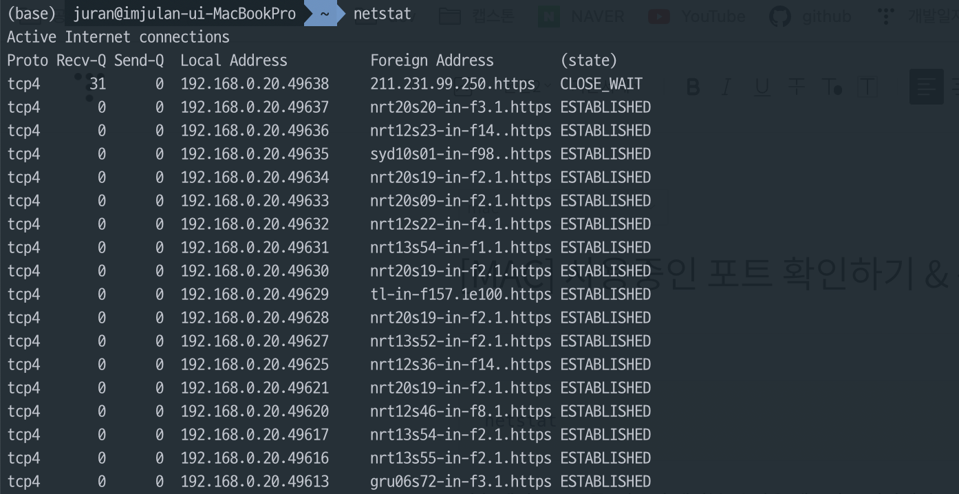 특정 포트 사용중인 프로세스 정보(PID, COMMAND, USER 등) 확인