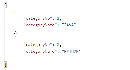 카테고리에 대한 정보를 조회하는 코드로 실행 결과 카테고리의 리스트 데이터 반환