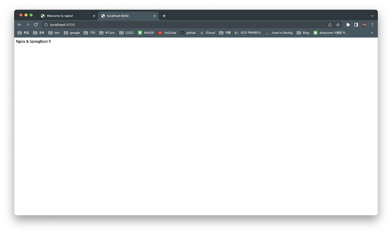 이렇게 기존의 Nginx 기본 페이지가 아닌 내가 스프링 프로젝트에서 설정한 웹 페이지로 연결되는 것을 확인할 수 있다!