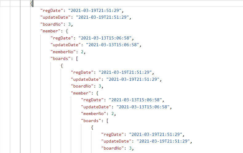 이런 경우 Board.Member ↔ Member.Board 이렇게 서로 순환참조하기 때문에 순환참조 문제가 발생한다.
