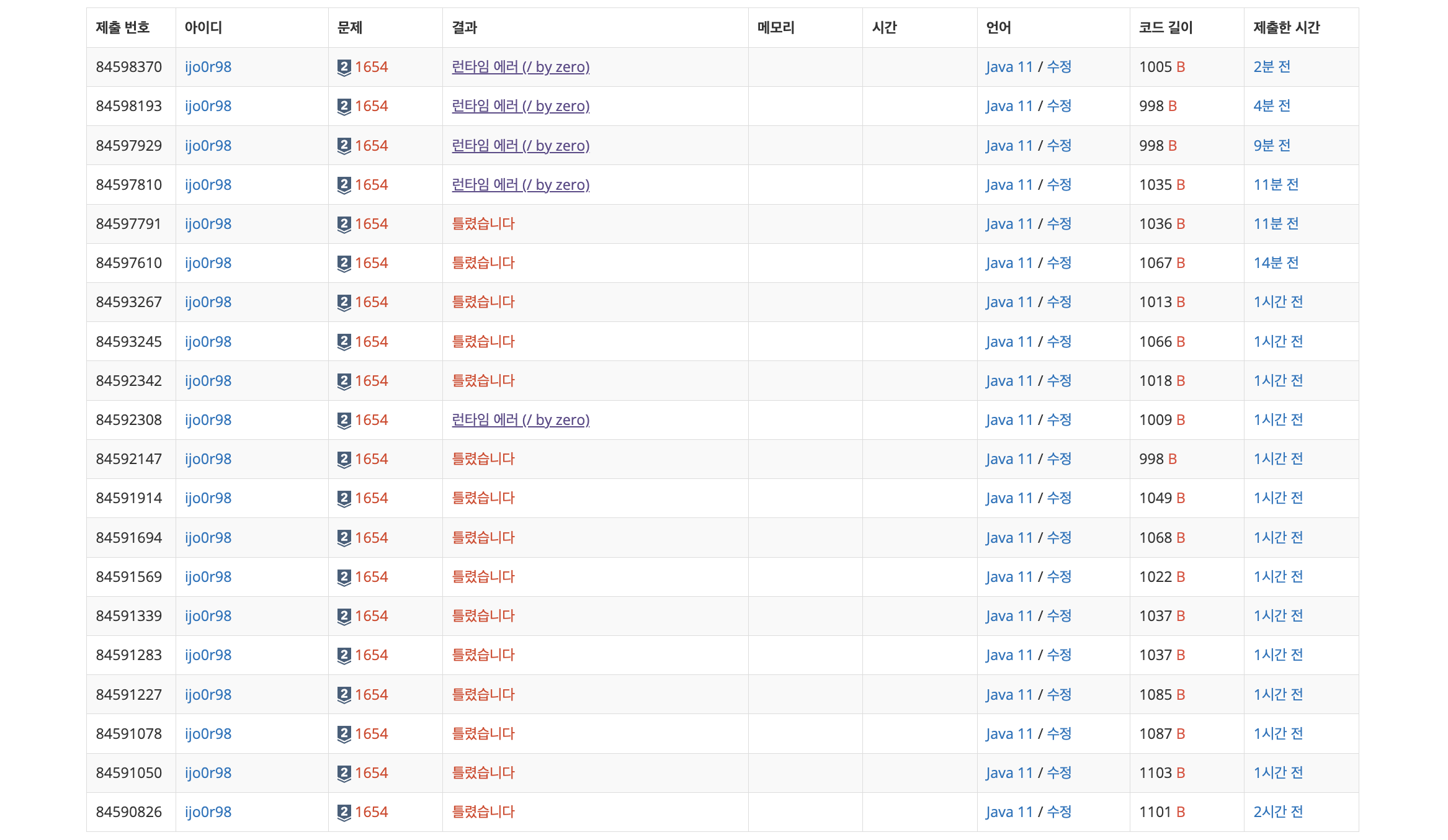 ++) 지금 보니 포스팅은 21년도 글이고, 그 뒤로 테스트케이스가 추가된듯하다. 해당 블로그 코드로 제출해도 런타임 오류남(/ by zero)