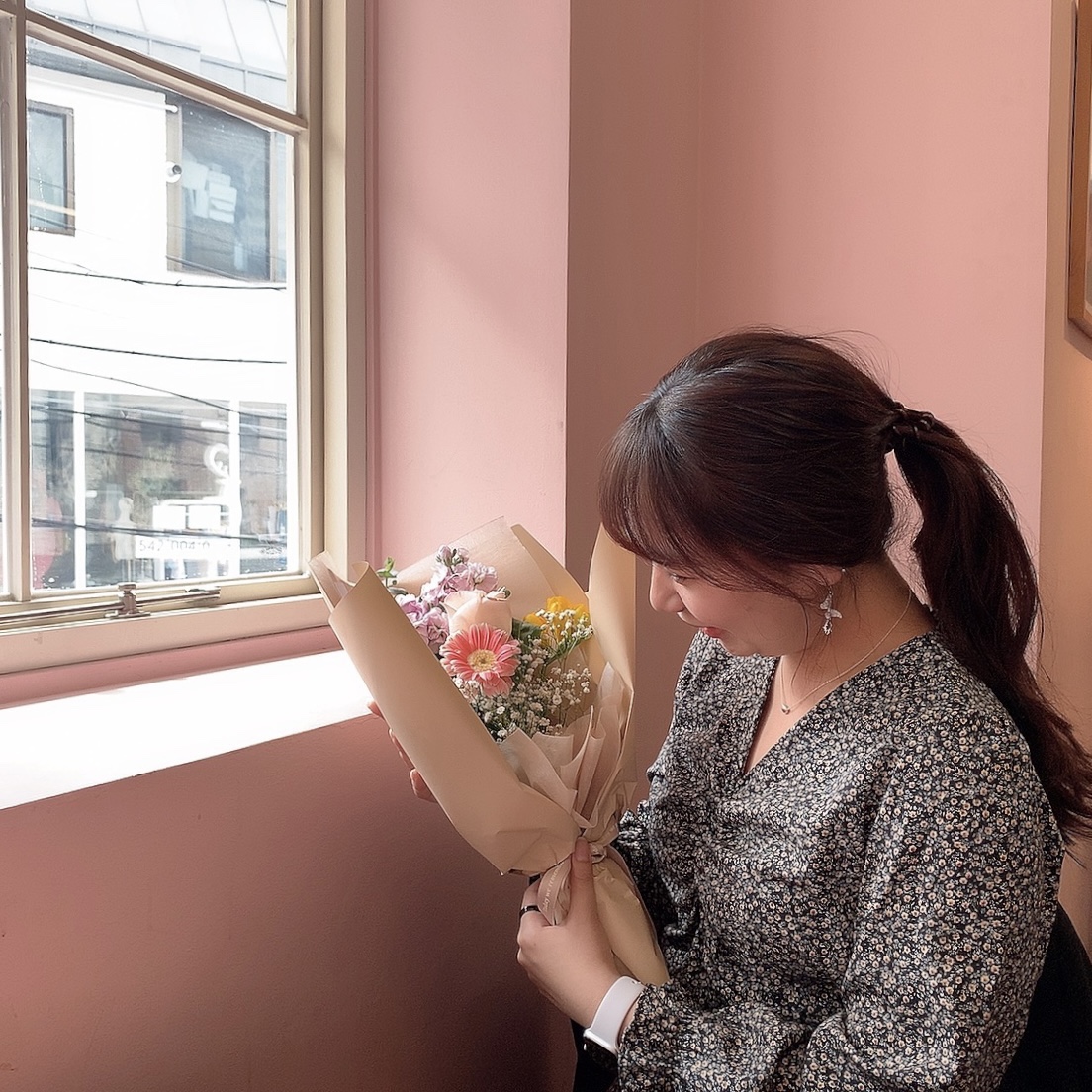 만나자마자 혜진이한테 받은 이쁜 꽃다발