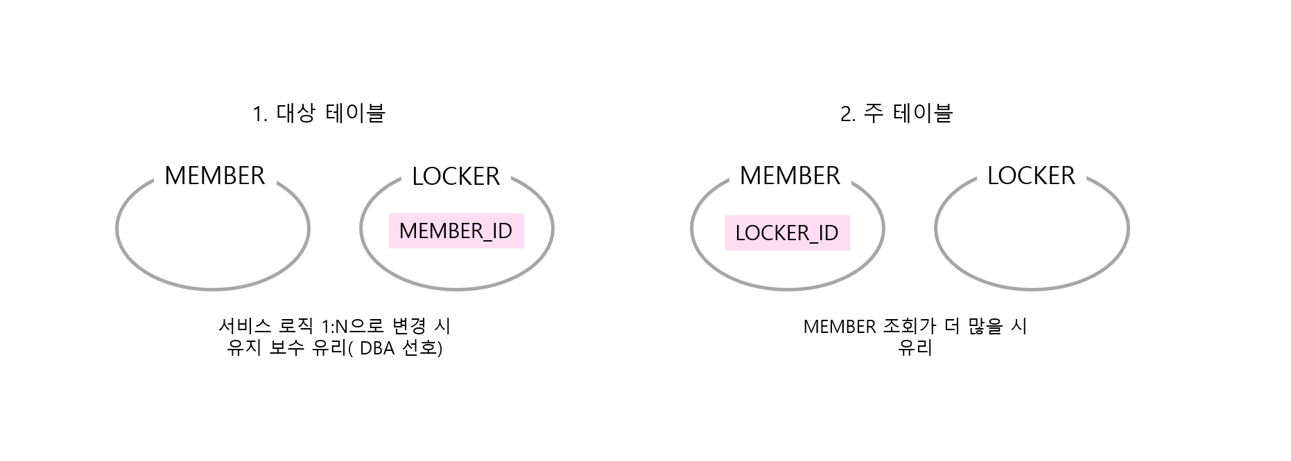 주 테이블이나 대상 테이블 중 외래키가 있는 곳 선택 가능 (외래 키가 있는 곳이 주인)