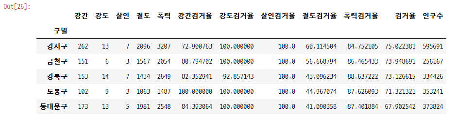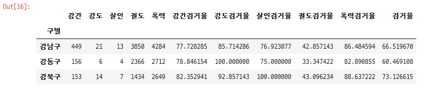 # 검거율 정보만 출력 gu_df[[열 리스트]]