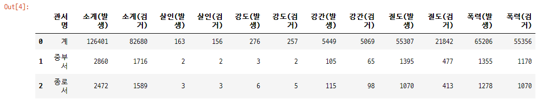 df = pd.read_excel('서울특별시 범죄 발생현황 통계자료.xlsx', encoding='utf-8') # euc-kr / cp949