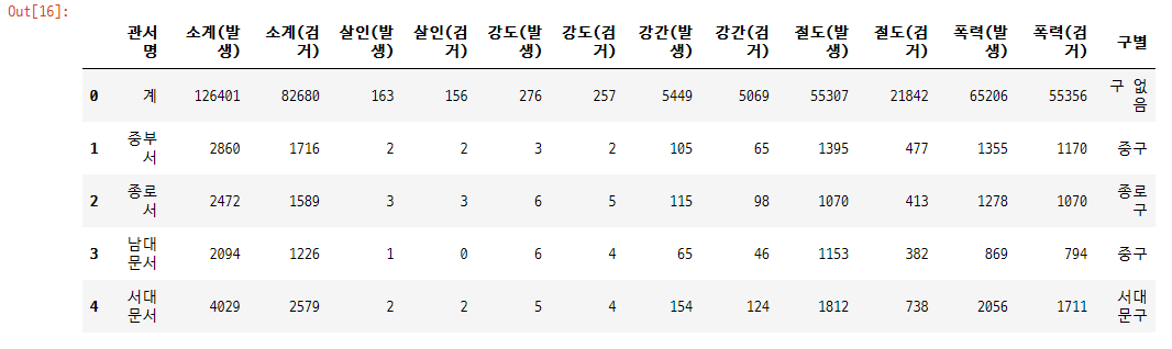 df['경찰서'] = station_name # '경찰서' 열 추가