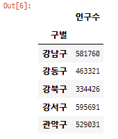 popul_df = pd.read_csv('data/pop_kor.csv', encoding='UTF-8', index_col='구별')