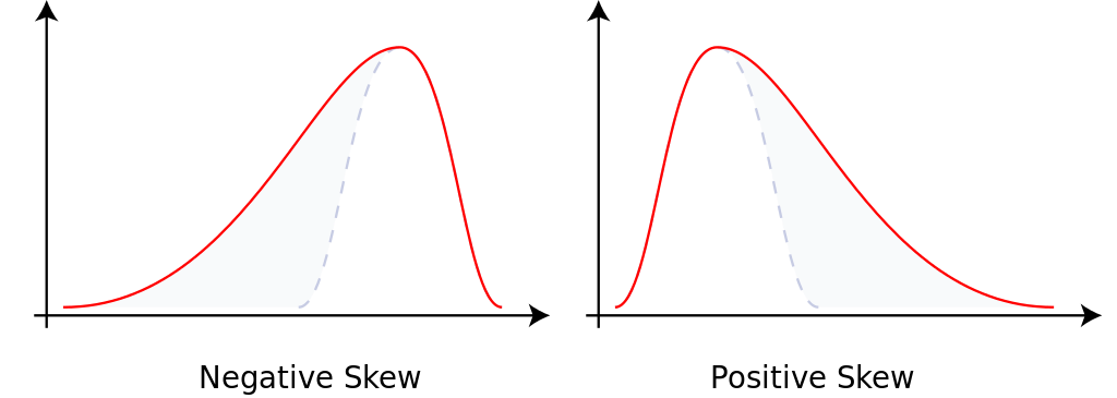 음수일 경우 왼쪽에 긴 꼬리를 가지며 양수일 경우 오른쪽으로 긴 꼬리를 가짐