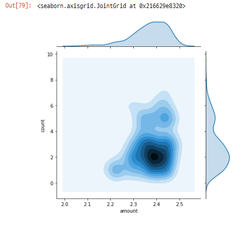 예시) 연 구매 횟수(count)와 1회 평균 구매 비용(amount)을 기준으로 히스토그램 plot