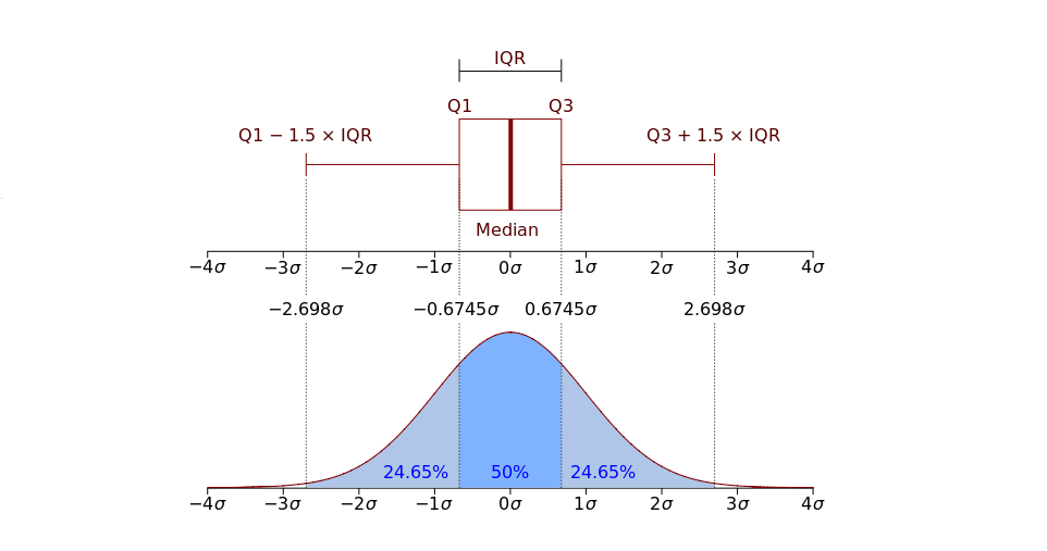 - 하한치 : 바닥부터 25% 지점의 값 - IQR의 1.5배 (Lower Whisker)