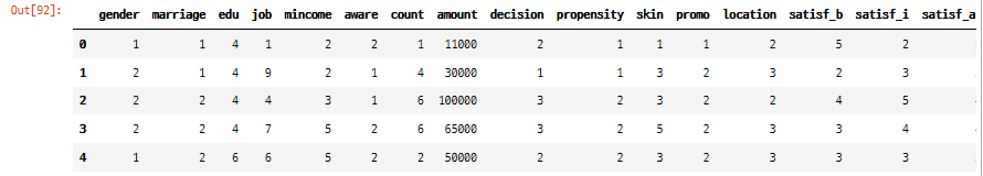 예시1) 남성과 여성의 화장품 만족도사이 연관관계 분석