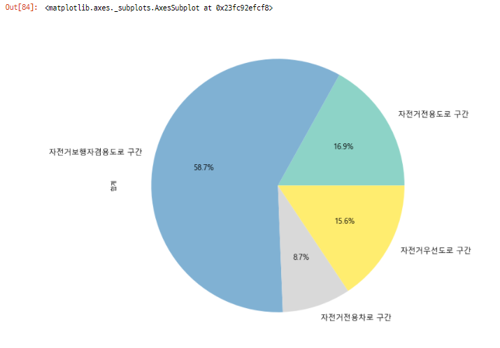 4) 서울시내 전체 자전거도로 중 각각의 자전거 도로 종류가 차지하는 비율 그래프 추가
