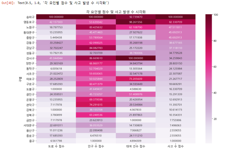 df_heatmap.sort_values(by='사고 수 점수', ascending=False, inplace=True)