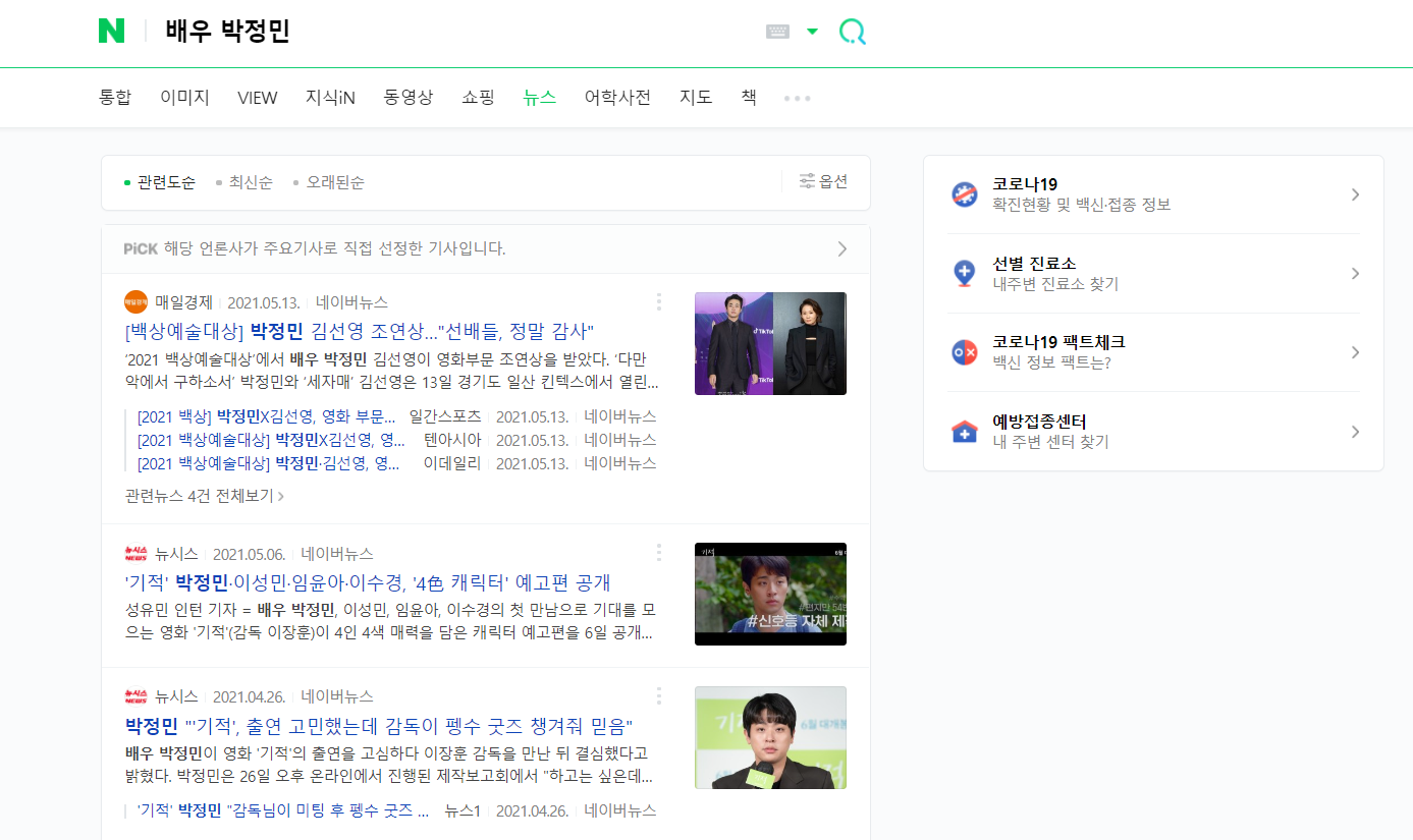 >> 'https://search.naver.com/search.naver?where=news&query=배우 박정민'