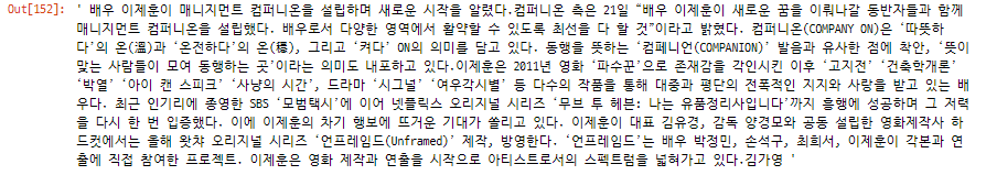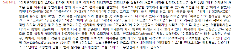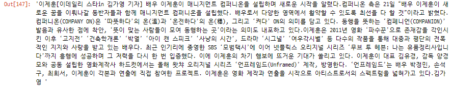 텍스트데이터 분석에 쓰기에 데이터 양도 부족할 뿐더러 몇 개의 뉴스에서는 본문이 제대로 스크랩되지 않아