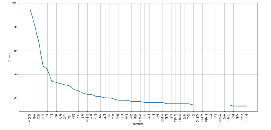 word_frequency = nltk.FreqDist(word_cleaned) # 단어 빈도 계산