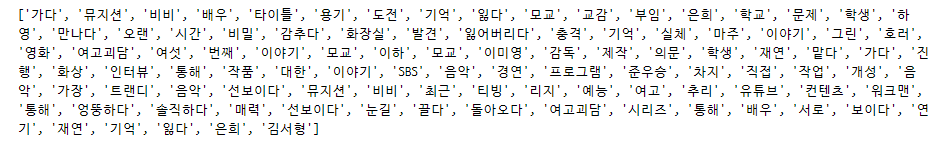 del_list = ['하다', '있다', '되다', '이다', '돼다', '않다', '그렇다', '아니다', '이렇다', '그렇다', '어떻다']