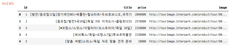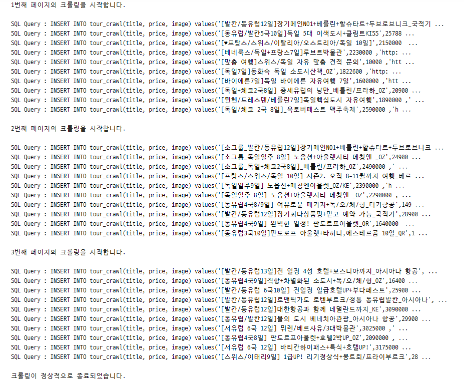 최대페이지 지정하여 여행상품 정보 스크랩, 데이터베이스에 저장