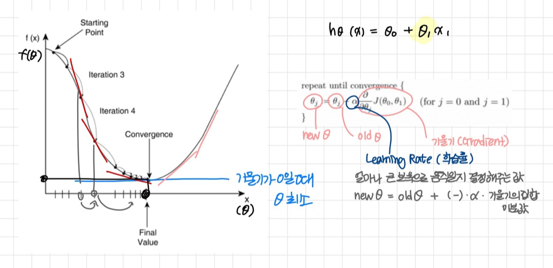 비용함수의 값을 최소로 만드는 θ를 찾아나가는 방법